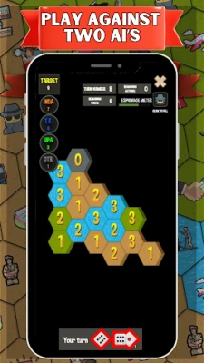 User need to throw dice then user gets as many actions as dice shows. User can use only these number of actions in that particular turn. Actions could be capture empty territory, Increase power of own territory, reduce power of enemy territory or Increase espionage meter.