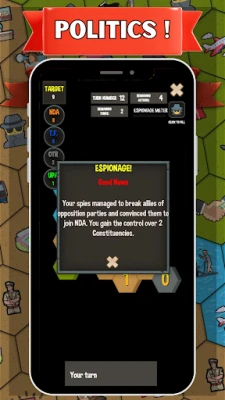 Three political alliances are competing to gain more than half of constituencies makes it more challenging and fun to play. User need to maintain balance between all combination of actions to win the game.